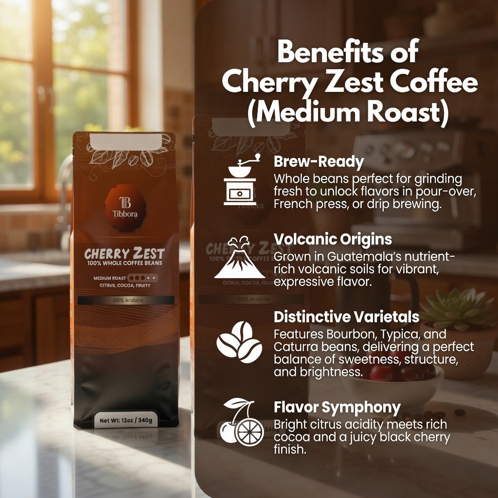 Discover the vibrant character of Cherry Zest Coffee, a premium single-origin Guatemalan medium roast crafted for coffee lovers who enjoy a balance of brightness and depth. This expressive blend features citrusy acidity, rich cocoa undertones, and layered notes of black cherry and soft fudge, creating a cup that’s both lively and satisfying.