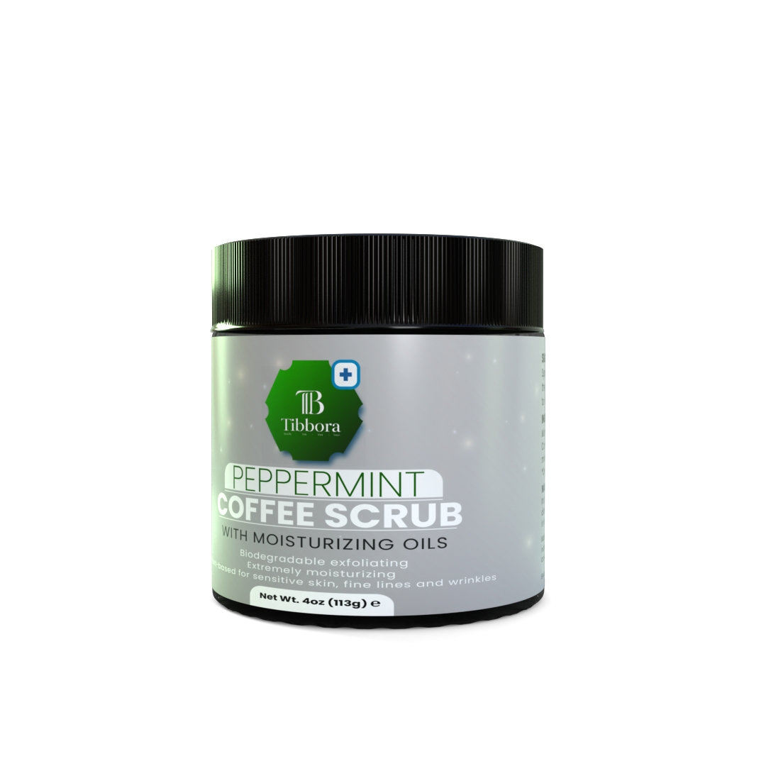 A revitalizing coffee and peppermint body scrub that exfoliates, hydrates, and smooths skin while promoting circulation, leaving a refreshed, youthful glow.